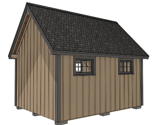 This 12' x 16' Shed would be great just about anywhere. This full plan includes everything to get you started building your dream Shed. We provide a sample foundation plan, sample first floor plan, sample architectural elevations with door and window schedules, a cross section detail, timber/fastener/connector list, all wall layouts, beam layouts, rafter layout, fastening details, and all single beam drawings. It uses 6x6 posts, 6x8 plate beams, 6x8 tie beams, 4x6 joists, 4x5 knee braces, 6x8 ridge plates and 4x6 and 6x6 rafters. Let us help you get started today with this set of plans!