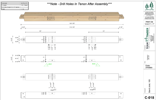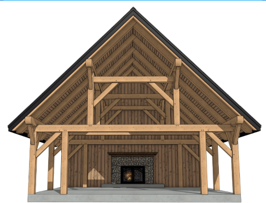 The frame design shown has not been engineered and is only intended as a general outline. It is the sole responsibility of the homeowner and/or contractor to determine if local or state code requires an engineer’s stamp on plans before erection. Team Timber, LLC does not design to a specific area and for that matter will not hold any reasonability or warranty plans if plans do not satisfy the requirements of local and/or state building codes.