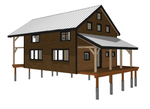 The frame design shown has not been engineered and is only intended as a general outline. It is the sole responsibility of the homeowner and/or contractor to determine if local or state code requires an engineer’s stamp on plans before erection. Team Timber, LLC does not design to a specific area and for that matter will not hold any reasonability or warranty plans if plans do not satisfy the requirements of local and/or state building codes.